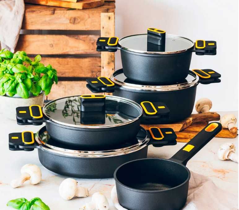 Descubre en nuestra tienda online de Cocina la increíble colección de Cacerolas de aluminio fundido de la marca Bra Daily Pro. La cacerola alta BRA Daily Pro de 24 cm combina ligereza y resistencia gracias a su cuerpo de aluminio fundido 100 % reciclable. Su revestimiento antiadherente tricapa Innovation, libre de PFOA, ofrece una cocción saludable con menos aceite. Incluye tapa de cristal y asas de silicona en negro y amarillo, resistentes al calor. Compatible con todo tipo de cocinas, incluso inducción. Cocina con calidad BRA y disfruta al mejor precio en nuestra tienda online. ¡Descúbrela y te enamorarás de ella! Las cacerolas Daily Pro de Bra son una fantástica opción por su relación calidad/precio y por su imagen moderna y muy funcional, diseñada por Ricard Ferrer. Su menor peso hace que sea una cazuela baja ideal para cocinar a diario, especialmente para las personas con dificultades para levantar piezas más pesadas. Cuentan con una superficie ultra resistente y sus asas permiten un agarre seguro y cómodo. Gracias a su antiadherente no se pegará nada, lo que hace que su limpieza resulte muy sencilla. ¡Indispensable en tu cocina!